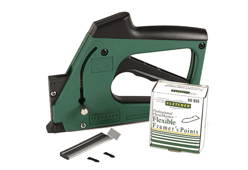 The legendary picture framing hand tool Fletcher FlexiMaster Point Driver is available here at a most competitive price. It is widely used by picture framers to securely fit-up backings materials and artwork inside photo frames, picture frames and poster frames. This hand tool is renown for it portability, ease of operation, durability and versatility. When the inner handle is squeezed, the tool deploys a toughened, spring-loaded firing steel driver to shoot flexible points. These can be bent to allow for easy permanent, or temporary, fitting up of artwork glass, backings and other strata materials. The driver's adjustable spring regulates the firing tension, and thence, driving power to suit the mouldings' varying hardness and density, thus ensuring that the points are driven flat, straight and securely. The easy-to-load refilling magazine is specifically designed for Fletcher Terry's flexible framer's points, allowing for easy access for re-loading. Its lightweight and comfortable grip is engineered for both men's and women's comfortable hand-grip firing with a lightweight trigger. Lastly, its versatility makes it eminently suitable for situations where the frame contents need to be adjusted or changed. The Fletcher FlexiMaster Point Driver is thus the perfect hand tool with which safely and securely hold and fit-up artwork and other materials in place for most, if not all, picture frames. Please note that the Framers' Points shown in some of the photographs are for informative purposes only and are not included with this product. The return-to-base warranty is 6 months, from the date of purchase. Subject to being in stock, order online here and now for prompt dispatch and ( where applicable ) delivery throughout Australia, including Melbourne, Adelaide, Perth, Darwin, Brisbane, Sydney, Canberra, Hobart, the Gold Coast and Brisbane! Thank you for viewing our Fletcher-Terry FlexiMaster Point Driver.