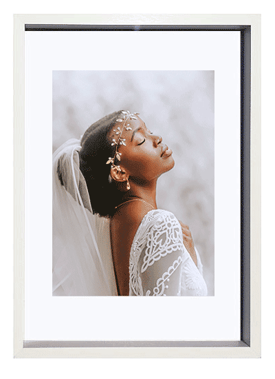 | Product Details | The frame is white, matte, wood, 15 mm wide x 25 mm high & cool, white window mat |