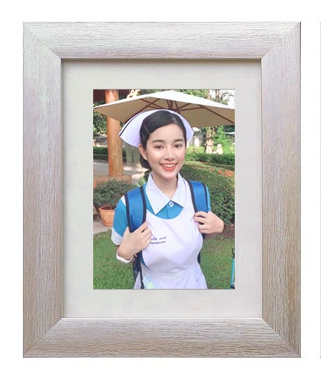| Product Details | The frame is silver, matte, plastic, 29mm wide x 14mm high, with a white window mat |