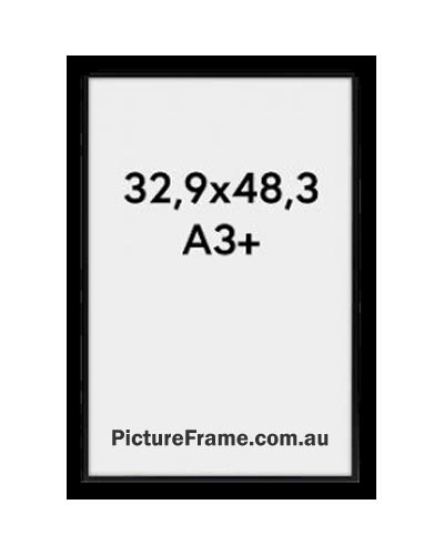 This A3+ (13"x19") Black Wood Ready-Made Picture Frame is one of the "Poster Frames', 'Stock Frames','Pre-Made Frames and 'Off-the-shelf frames'. This off-the-shelf, pre-made, wood picture frame has a pane of clear glass and a Craftwood backing board with with several flexible tabs to hold everything together. The flexible tabs of this A3+ Black Wood Ready-Made Picture Frame can be bent to remove the back and insert the print, photo, poster or artwork inside the frame. After inserting the artwork in this A3+ Black Wood Ready-Made Picture Frame, the tabs are returned to their original position and the fitted frame may then be hung. The hanging orientation, either portrait or landscape is to be selected prior to ordering. This Ready-Made frame is fitted with with cardboard corner protectors is shrink-wrapped for your convenience. Subject to being in stock, order online here and now for prompt dispatch and ( where applicable ) delivery throughout Australia, including Melbourne, Adelaide, Perth, Darwin, Brisbane, Sydney, Canberra, Hobart, the Gold Coast and Brisbane! Thank you for viewing our A3+ Wood Ready-Made Picture Frame.